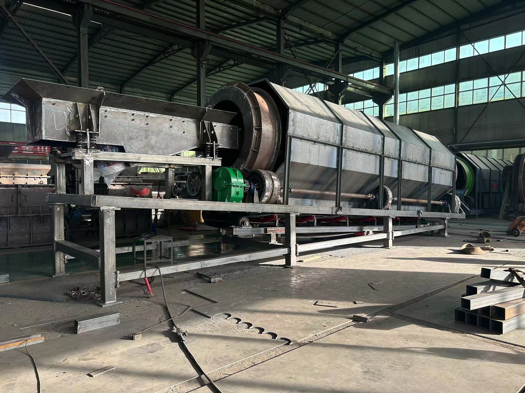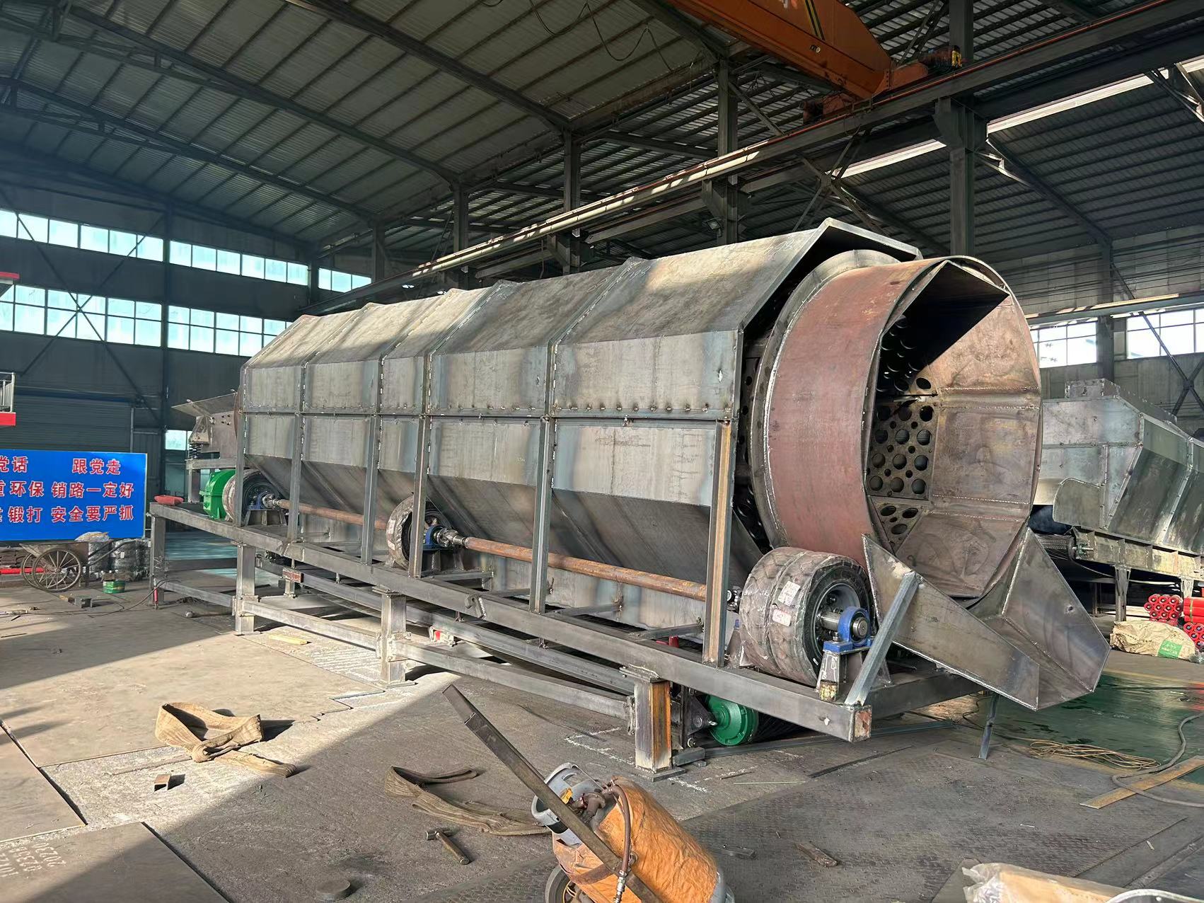 凱龍環(huán)保圓筒篩做工精細(xì),堅固耐磨,鋼架以型鋼焊接,漏斗容積大,為鋼板接而成,設(shè)有五個漏斗分別出料,漏斗嘴連接,可向兩側(cè)或一側(cè)進料,便于拉運或自流,提高了產(chǎn)量,防止堵料磨損篩網(wǎng),耽誤生產(chǎn)。